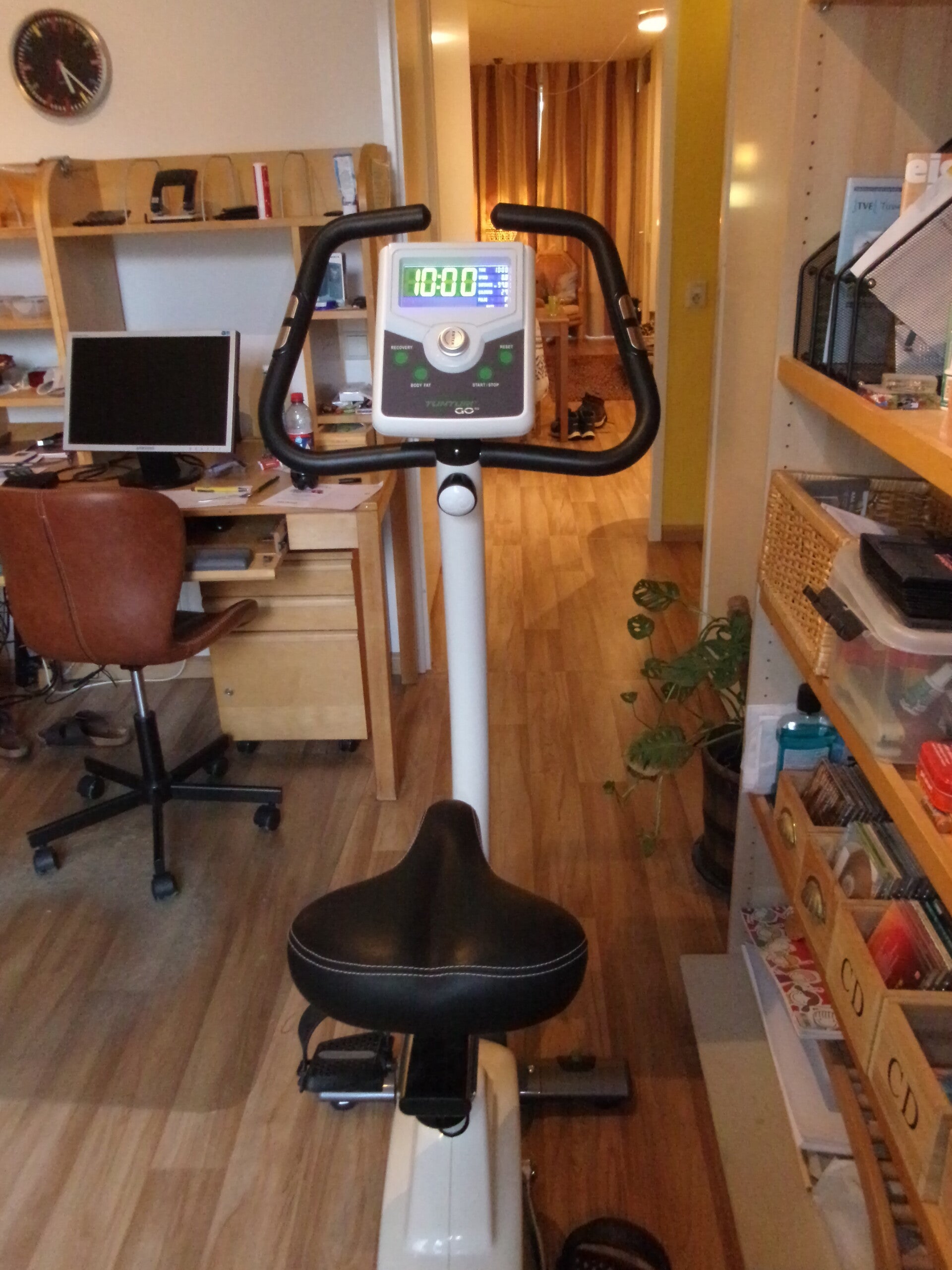 Vandaag een mooi verjaardagscadeau gehad. Een tweedehands hometrainer. Deze is toch beter dan die vorige. Toen ik die gele nog had ratel hij vreselijk zo en probleem was toen met de versnellingen waardoor hij vaker vast liep. Wat ik nu heb gekregen is ook iets modernere dan die vorige en heeft een elektrische display waardoor ik ook veel makkelijker op kan zien hoeveel calorieën ik mee heb verbrand. Ik kom voor vandaag met 10 minuten erop 27. Mijn moeder dacht eerst dat ze vanuit Bussum niet zou leveren, maar kennelijk toch wel en misschien kwamen wel de verzendkosten bovenop. Deze ratelt gelukkig niet! En hij is vele malen beter dan die vorige.